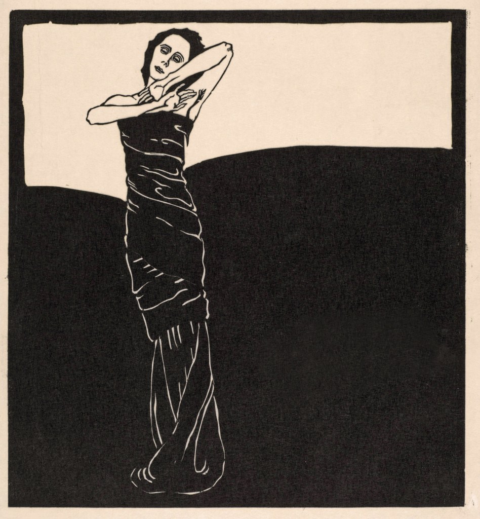František Kobliha :: Legenda o hadovi s lidskou hlavou (z cyklu Pohádky a legendy), 1916. Dřevoryt, papír. | Legend of a snake with a human head (from the series Fairy Tales and Legends). Woodcut, paper. Landesmuseum Niederösterreich. | src Meisterwerke aus der Sammlung Patrik Šimon