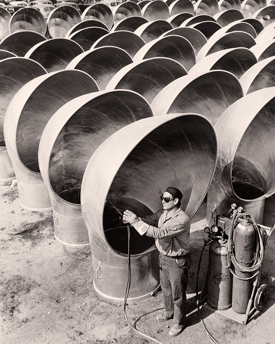A welder works on cowls for liberty ships in California, 1942. Photograph by Acme News Pictures, Inc. Uncredited photographer. / via natgeofound