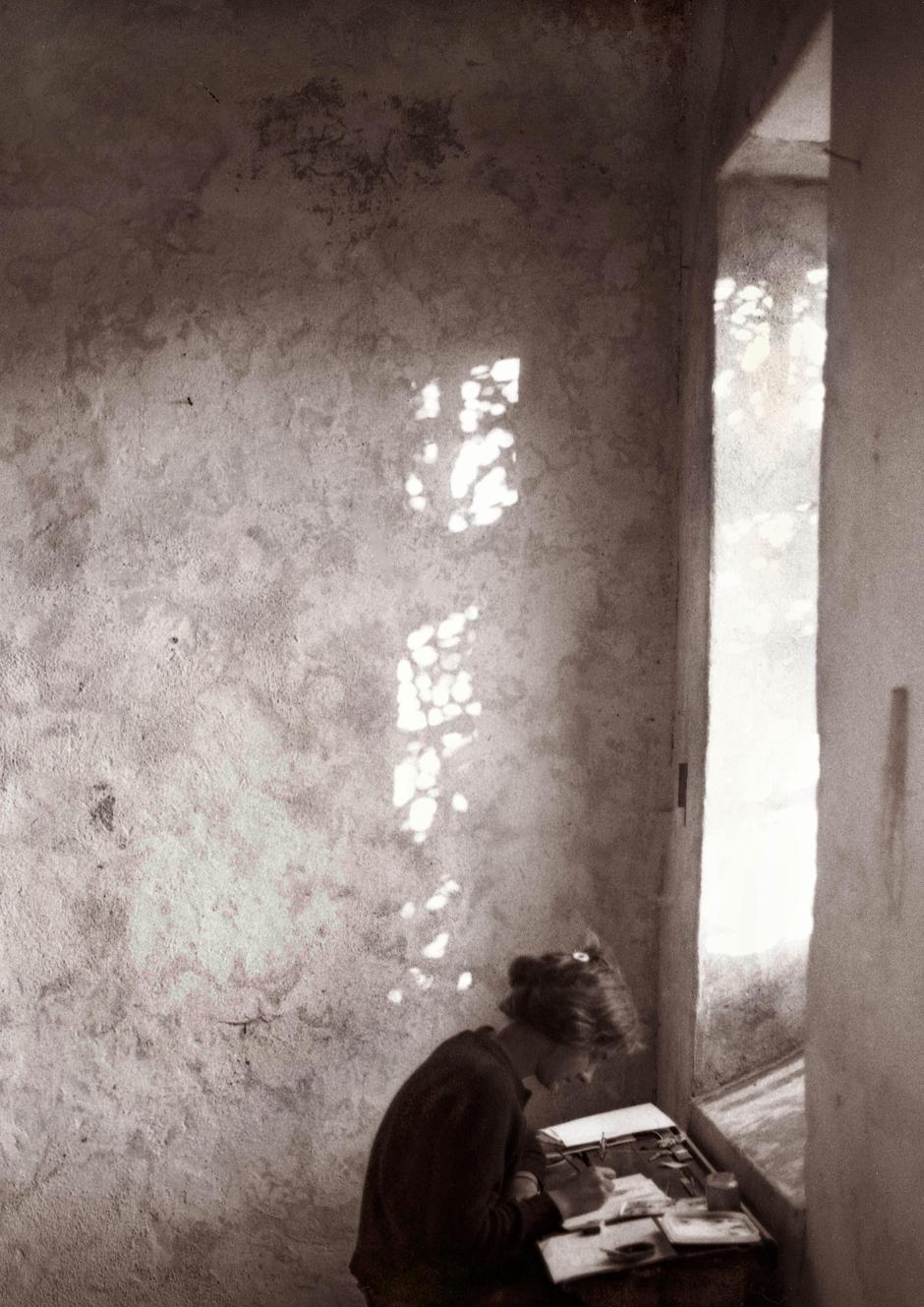 Josep Postius :: Writer Mercè Rodoreda posing at the same place (Bodega La Uva de Oro) where the photograph for the first edition of her novel ‘La Plaça del Diamant’ was taken, 1968 / src: barcelofilia